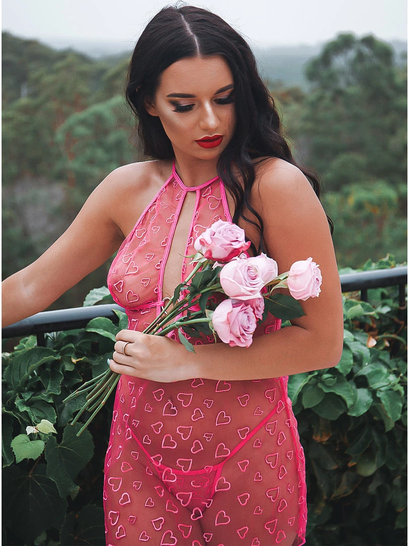 Chasin’ Hearts 2-Piece Heart Embroidery Mesh Chemise Set, cos you’re looking for the one this Valentines Day, babe!