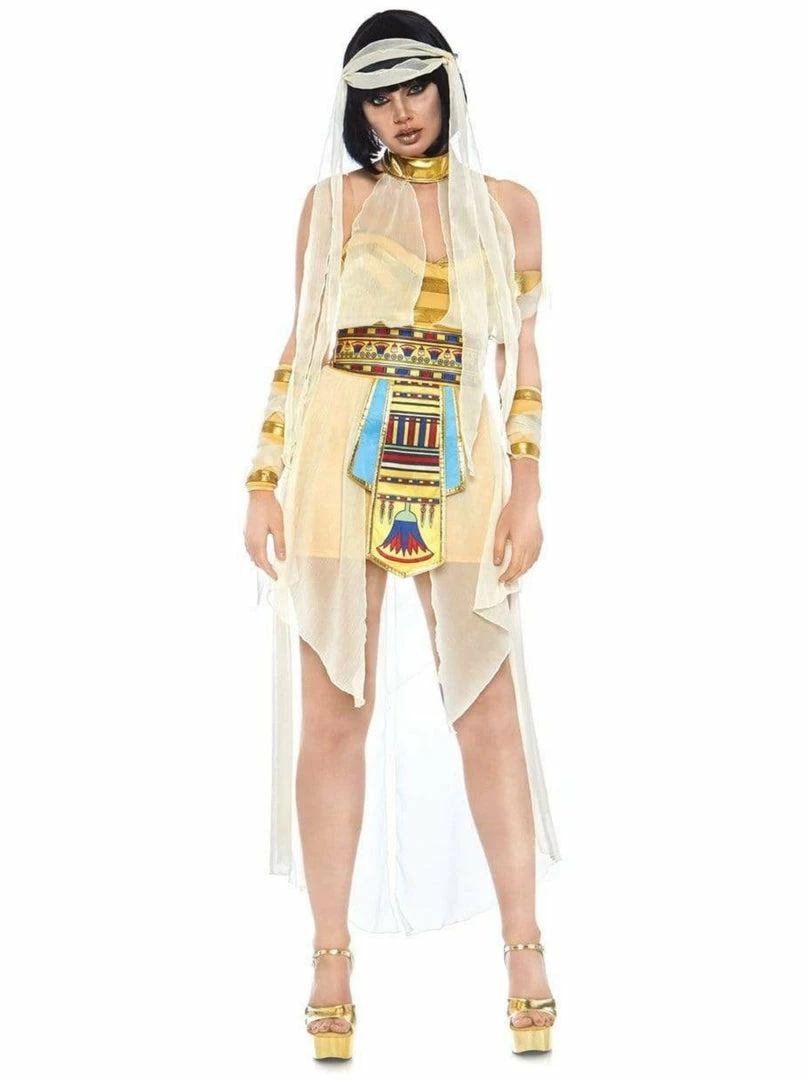 This luxurious 6 PC Nile Mummy womens costume by Leg Avenue features a curve clinging spandex mini dress that will have you looking Cleopatra-fabulous!Â