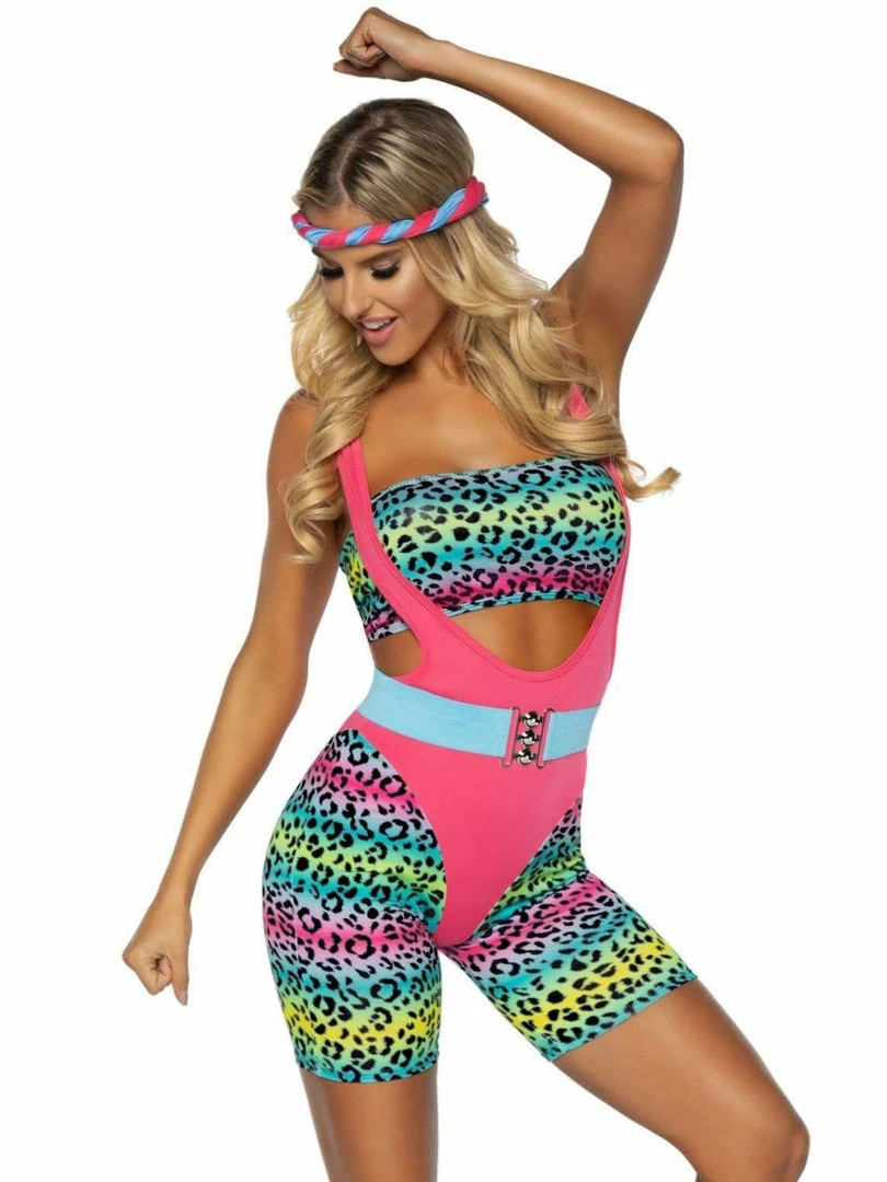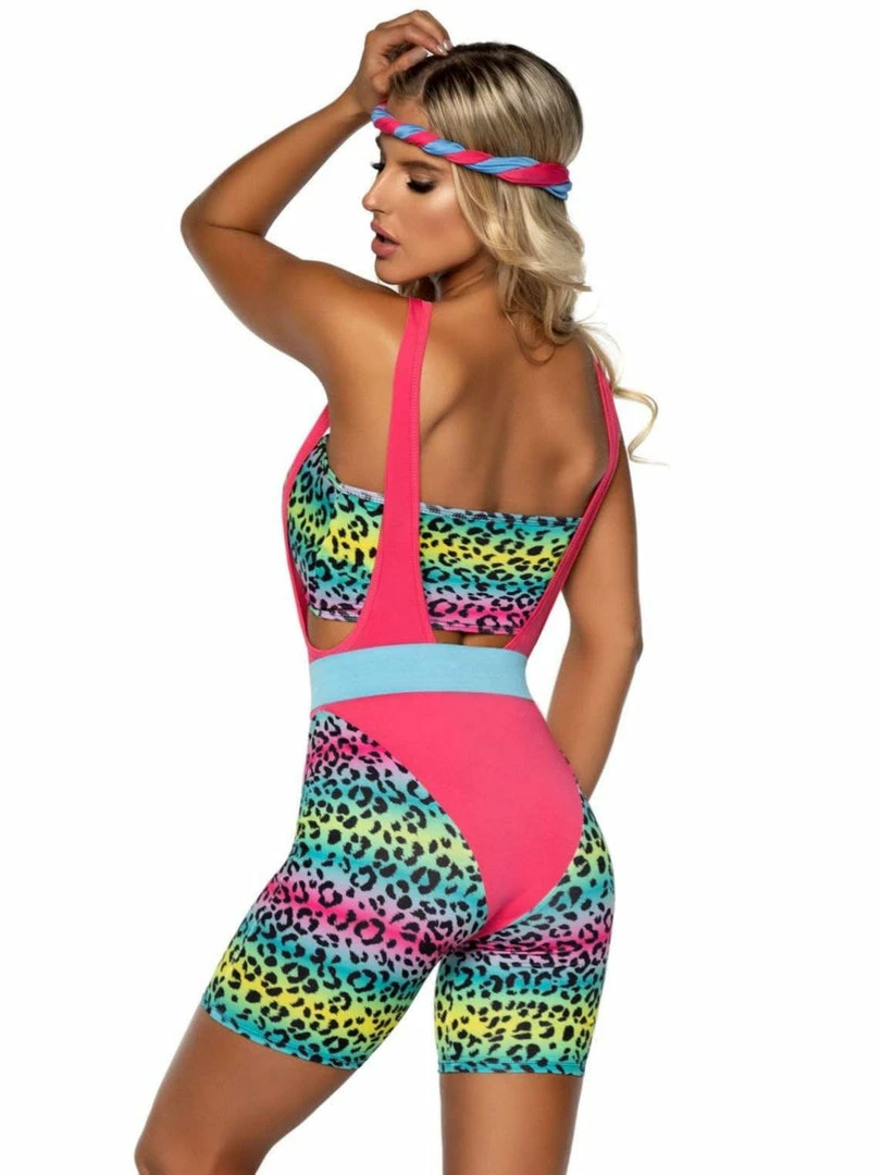 The fun and colorful leopard print is perfect for getting into the 80s spirit, while the comfortable construction will keep you feeling good as you work up a sweat.