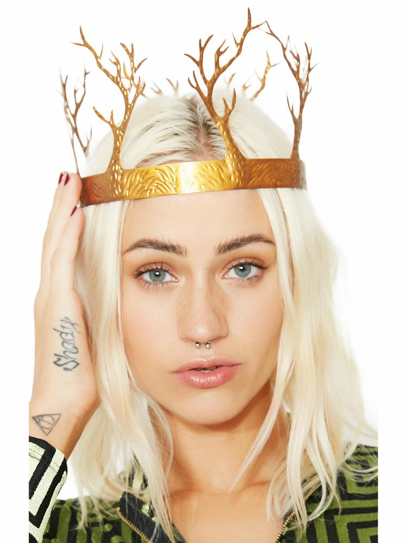 Essential for Woodland Queens, festival-goers, fairies, fancy dress and all with a sense of mythology and nature. This gold coated metal costume crown features delicate tree branch details that will compliment your dramatic, fantasy, alternative themed outfit to remind everyone why you’re the queen at your next fancy dress party.