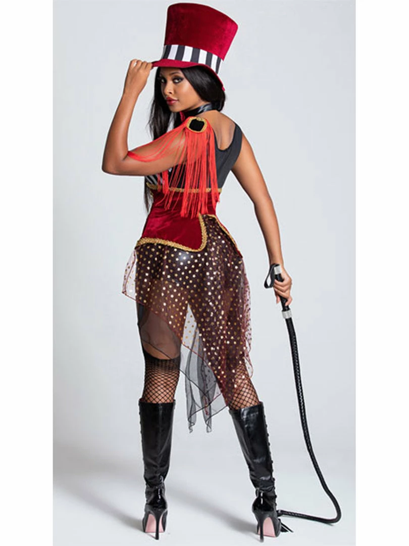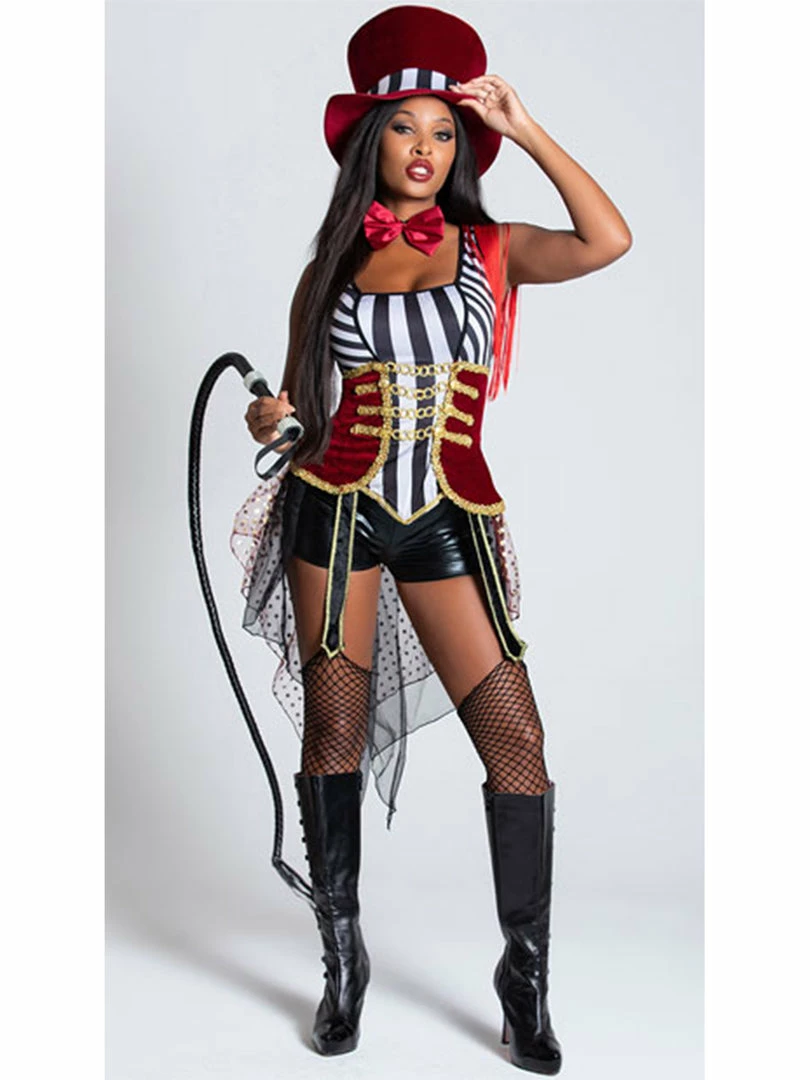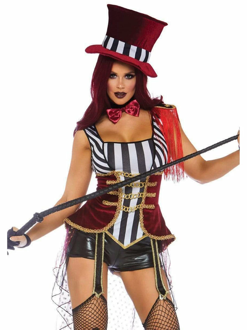 Perfect for any Circus or Carnival Theme Costume Party or even Halloween! Pair up with our other circus babes for the ultimate group costume! Looking to tame the lion? Pair with our Lovely Lioness Costume! Or looking to meet your match? Pair up with our Sinister Ring Master Costume to run the show!
